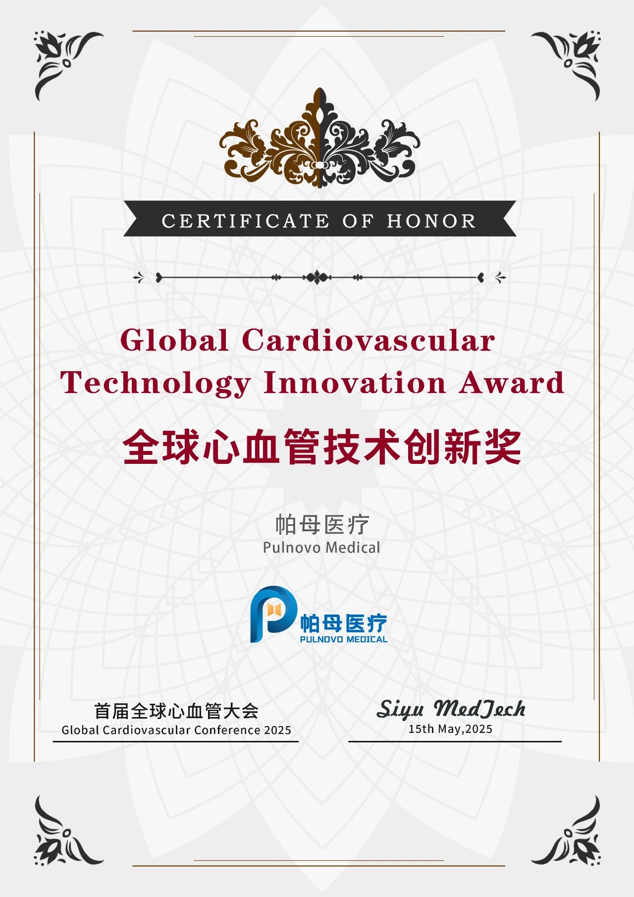 2025年5月15日,全球心血管大会(Global Cardiovascular Conference 2025)在北京召开。帕母医疗凭借原创技术PADN的全球创新性,在本次年度评选中脱颖而出,荣获“2025全球心血管技术创新奖”。这一殊荣不仅是对帕母医疗创新能力的高度认可,更彰显其在技术研发、临床价值、产品质量与全球化布局等方面的领先地位。