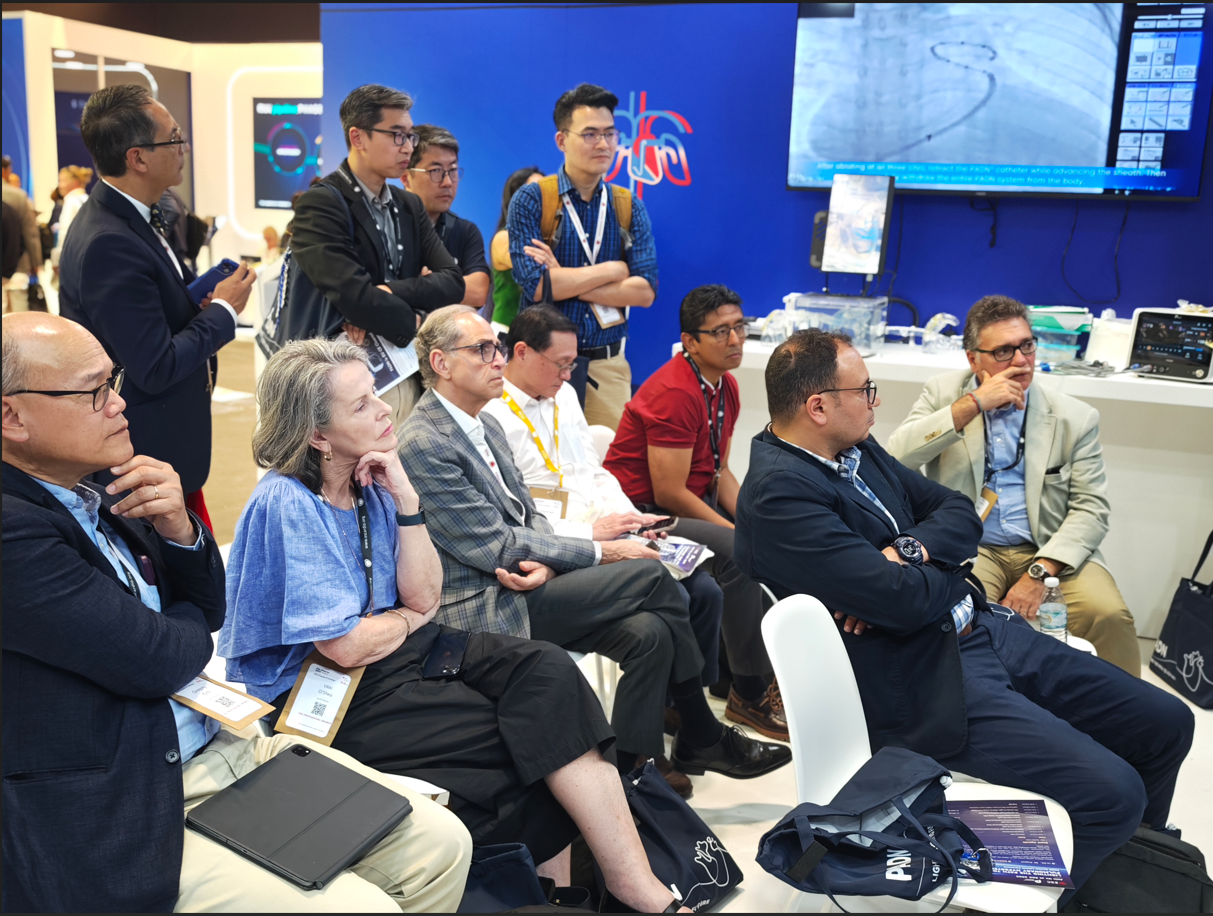 大会期间,帕母医疗特别打造了沉浸式互动体验区,将前沿学术展示与实体模型实操深度融合,系统呈现PADN的技术原理与临床价值。与会嘉宾在展台同事的细致讲解中,亲身参与操作与交流,不仅直观感受这一中国原创介入技术的原始创新力,也深入了解其多年积累的扎实临床数据与循证证据。